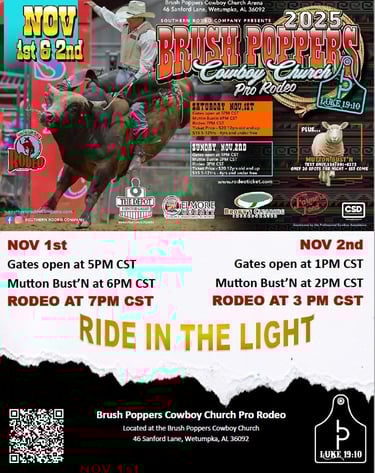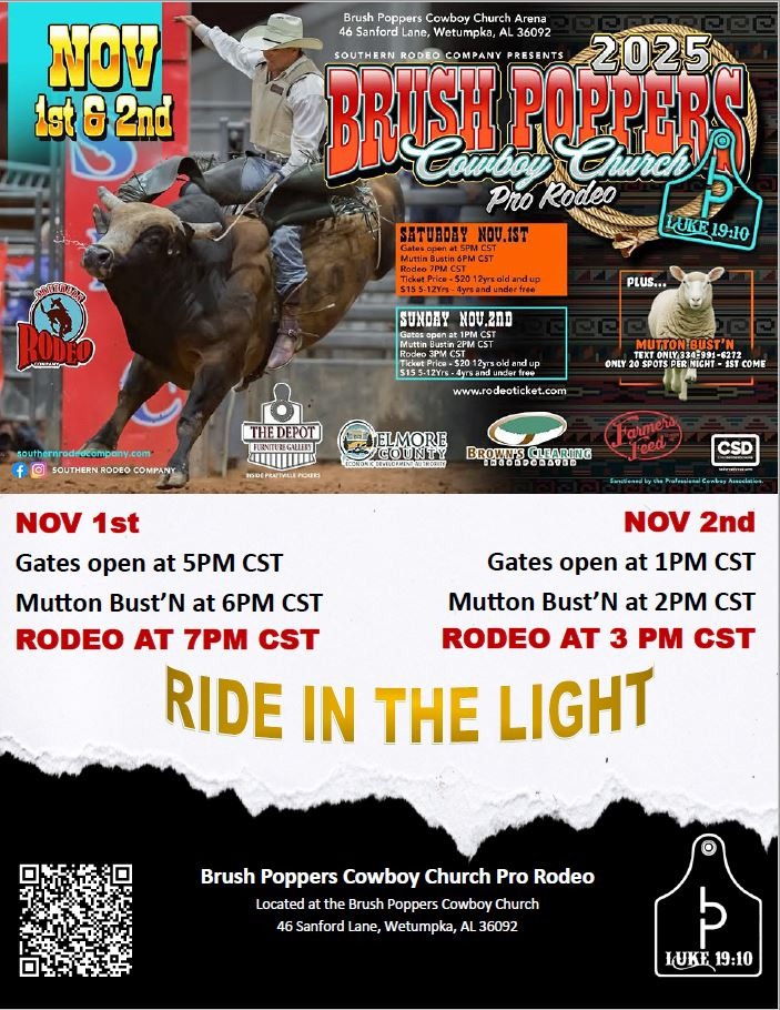 Doug was at Brush Poppers Cowboy Church to promote the professional radio this weekend in Wetumpka, with church/rodeo guests including Bill Coleman, Shane Esco, Chette Matthews, Josh Brooks and Josh Ethridge. Normal Thursday guests included Jacob Goins, Gerad Parker, Dan Peck, Will Fisher and Michael Gittens.
